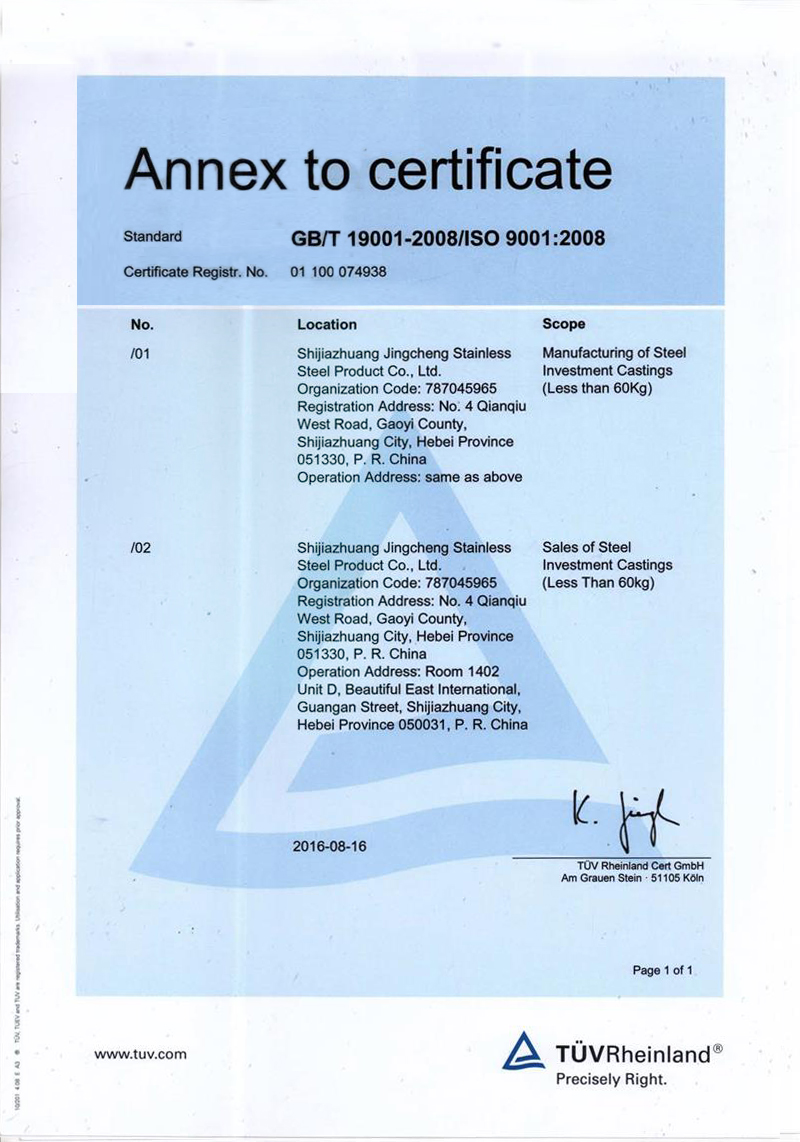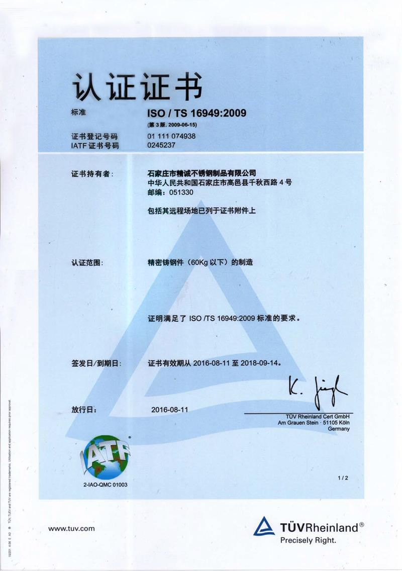 石家莊市精誠不銹鋼制品有限公司,是一家從事專業(yè)精密鑄造的企業(yè)。主要生產不銹鋼、合金鋼、低碳鋼及各種特種合金材質的精密鑄件及加工產品。